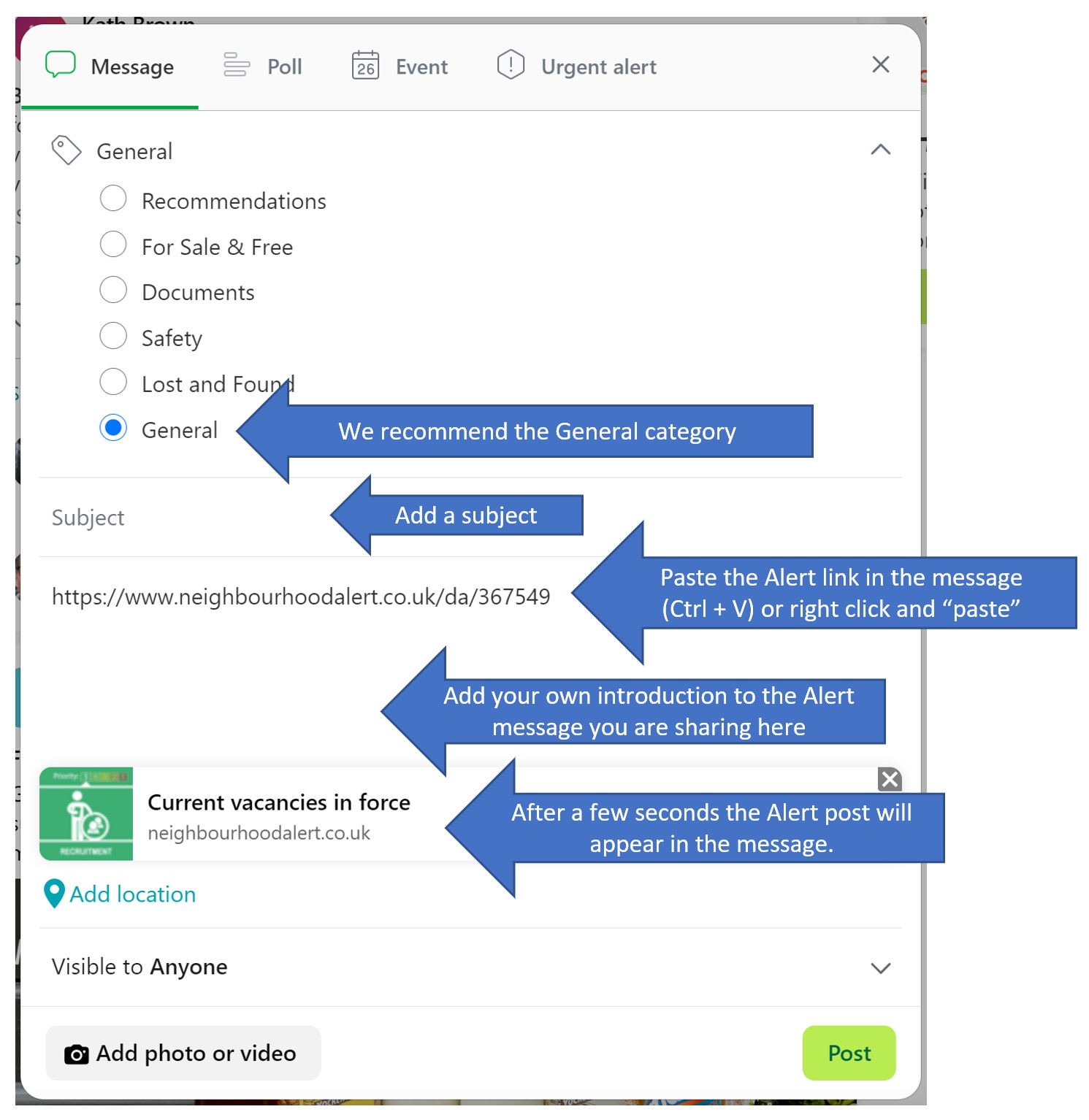 Note: We recommend you add the post as a "Safety notice" and "Something else" not as "reporting a crime, as we cannot verify what happens with those posts.